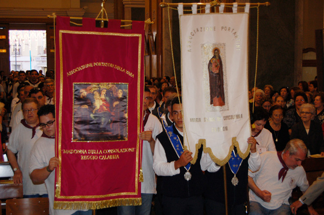Protocollo di Gemellaggio e Patto d’AmiciziaE’ stato un gemellaggio che ha suscitato sentita emozione quello sancito tra le Associazioni dei Portantini Maria SS. di Capocolonna e dei Portatori della Vara «Madonna della Consolazione» di Reggio Calabria in occasione dei tradizionali solenni festeggiamenti in onore della Patrona e Protettrice di Crotone.