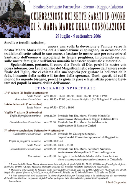 Manifesto dei sette Sabati in onore di S. Maria Madre della Consolazione 2006